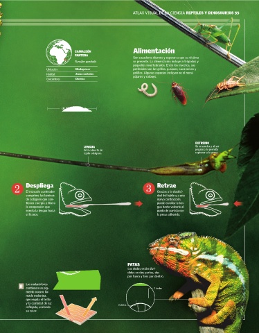 54 C3 LAGARTOS Y COCODRILOS 54-55Camaleones ajustado2.qxp 7/14/10 3:42 PM Page 55 ATLAS VISUAL DE LA CIENCIA REPTILES Y DINOSAURIOS 55