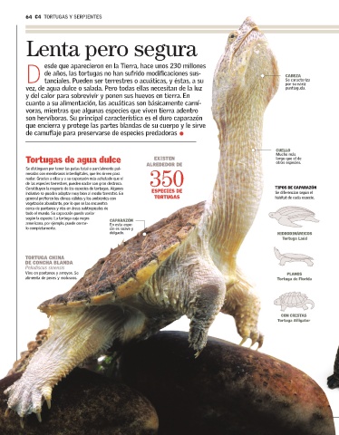 de años, las tortugas no han sufrido modificaciones sus- CABEZA delanteras les sirven para impulsarse y las traseras, como timón para
